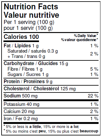 Serving size is an 8-ounce portion. A 10 pound case contains 20 x 8-ounce portions.
